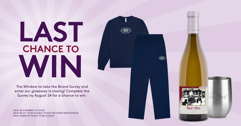 💜 LAST CHANCE TO ENTER. 💜 Sigma Kappa is refreshing our brand, and we need YOUR voice before time runs out. ⏳ 📣 Complete the quick, anonymous brand survey in your inbox by 8/24/25 for a chance to win: ✨ Collegiate Winner ➡️ Trendsetter Sweat Set from Shop Sigma Kappa 🍷 Alumnae Winner ➡️ Gift basket from One Heart Napa Valley 🛍️ Plus, Greek Life Chic is offering 15% off to all Sigma Kappa members with code DOVELOVE15 at checkout.