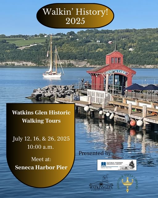 Join us this Saturday for a guided tour of Watkins Glen. Whether you are a lifelong resident, a summer resident, returning to see family, or just relaxing in the Finger Lakes, these walks provide a plethora of stories about Watkins Glen. Have you ever wondered how the diverse buildings on Franklin St.