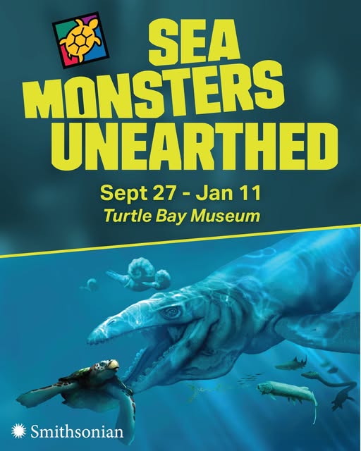 🦕 Coming Soon to Turtle Bay: Sea Monsters Unearthed. 🌊 Opening September 27, dive into a prehistoric world where Redding was once beneath an ocean full of dinosaurs. Explore large-scale skeletons, interactive fossil investigations, and discover how newly unearthed fossils from Angola connect to our local ancient environment.