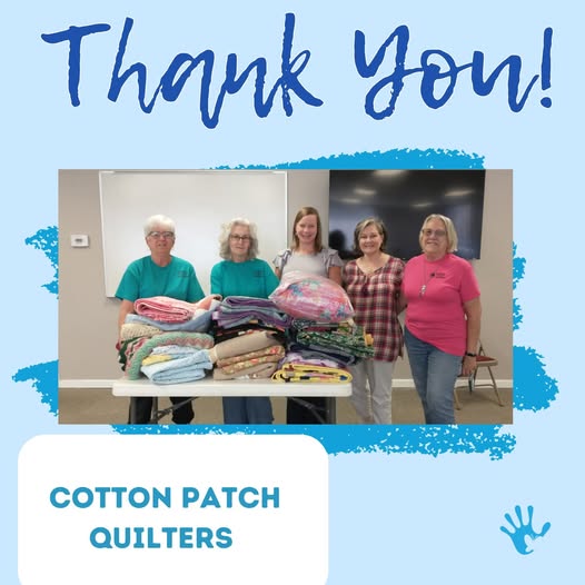Big shout out to the amazing Cotton Patch Quilters. 💙🧵 Our Executive Director, Jana Zuelzke, had the honor of speaking at their meeting this week and came back with the most beautiful quilts and blankets made by their talented hands. These special gifts will be used in so many meaningful ways – children will get to pick one after their forensic interview for comfort, some will help raise funds in our Flutter auction, and others will be part of our Rooms of Hope project where we redo bedrooms for kids who experienced abuse in their own home or room.