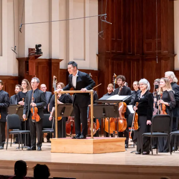 The dazzling lights, smiles, and celebratory cheer shone bright last Saturday as we concluded our 96th concert season. Under the baton of Maestro Earl Lee, the A2SO returned to Hill Auditorium for the final time this season, performing Katherine Balch's musica pyralis and Gustav Mahler's Symphony No. 5 with musical finesse and fervor.