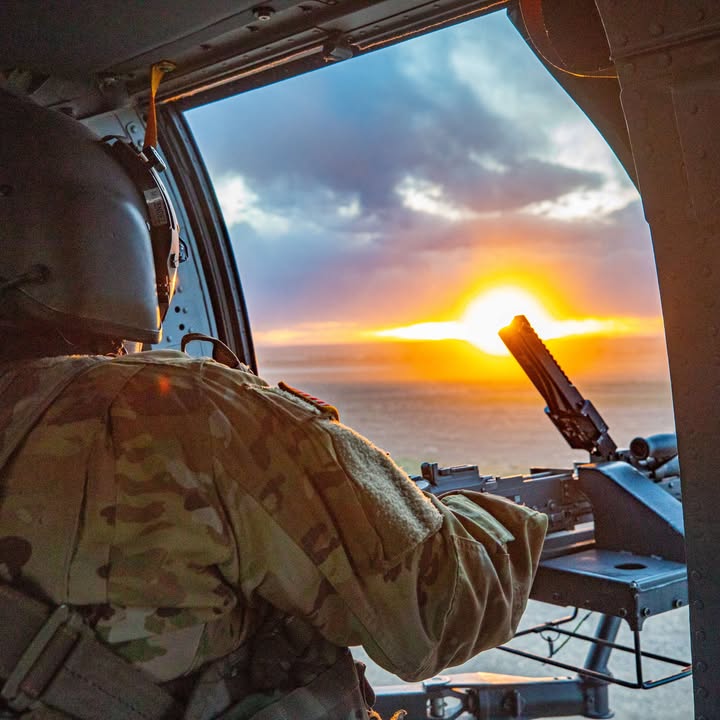 U. S. Army Sergeant Nayson Melendez, UH-60 Black Hawk helicopter Crew Chief for bravo company, 3rd Assault Helicopter Battalion, 4th Aviation Regiment, 4th Combat Aviation Brigade, 4th Infantry Division, clears mounted M-240H machine gun before switching to night live fire operations in Pinon Canyon, Colorado, on Apr.