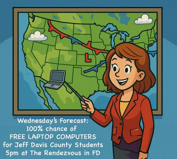 Today's The Day. Mobile Comunidad is giving away free laptops and backpacks to any household with students in grade 2 or higher enrolled for the 2025β26 school year in: β’ Fort Davis ISD β’ Valentine ISD β’ Approved homeschool program (lives in Jeff Davis County) π Event Details When: Wednesday, August 13, 2025 β 5β7 PM Where: The Rendezvous, 105 W Second, Fort Davis, TX While supplies last. β Save time β pre-register here: https://laptops.