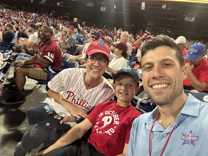 Last night was a special one 💚 ⚾ We were so excited to send Brynn and her son, Jordan, to the Phillies game for a night they won’t forget. Our incredible Jr. Board member, Matt, stopped by their seats with a surprise—City Connect hats 🧢✨ And to top it all off… the Phillies brought home the win.