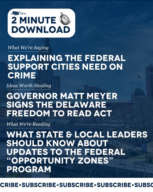 In this week's 2 Minute Download. 🏙️ Explaining the federal support cities need on crime 📚 The Delaware Freedom to Read Act ensures libraries promote fairness 📈 Updates to the federal “opportunity zones” program Subscribe today for the latest governing news: https://buff. ly/F3Ah0dl.