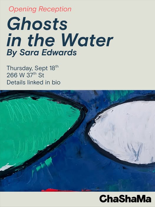 If you’re looking for something to do this evening, stop by our gallery at 266 W 37th St and see the beautiful “Ghosts in the Water” by the amazing @iamsaraartist . 🌊💙 This exhibit refers to the two years Ms. Edward spent in the South Pacific working as an anthropologist.
