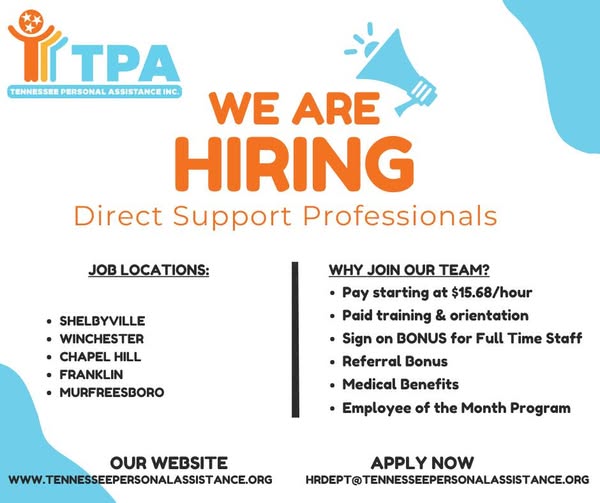 TPA is licensed by the State of TN to provide personal supports and home health care services.
