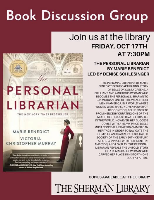 The Sherman Library Help support the Sherman Library by becoming a member today. Programs The library offers many programs for adults and children Adult Programs Childrens Programs Book Groups Zoom Tutorial eBooks Audio Your favorite ebooks and audiobooks are available to download to your device Hoopla Libby Palace Project Children YA The library offers programs and services for children young adults and families Childrens Programs 100 Book Challenge Nutmeg Nominees Additional Resources Learn a new language stream movies and TV Shows visit a museum or check out a puzzle Mango Languages Hoopla Movies TV Museum Passes Puzzles A to Z World Culture Whats up at the Library Find out whats new at the Sherman Library Sign up for our Newsletter Art Show Annual Appeal Winter Reading Challenge Research Publications Subscribe and read digital copies of the newspaper and magazines and access databases NY Times online NewsBank Magazines State Database Upcoming Programs Adult Programs Childrens Programs New Noteworthy Books The Sherman Library receives new books weekly. New Mystery New Nonfiction Biography New Fiction Become a member Membership has its benefits. but most of all its knowing that you are part of a long tradition of supporting your library and ensuring it continues for many more years to come.