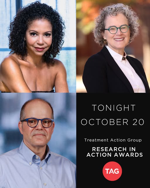 Our Research in Action Awards took place on Monday night, 10/20, and it was a wonderful evening. Our honorees were actor and activist Gloria Reuben, Dr. Jeanne Marrazzo, who was appointed NIAID Director in September, 2023, and Richard Lynn, TAG longtime board member, activist, and philanthropist.