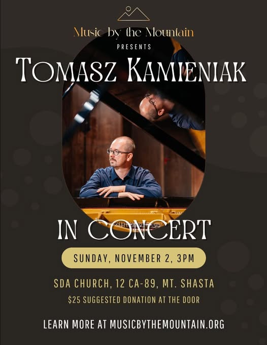 Music by the Mountain Bringing extraordinary classical music to our community providing educational outreach for students of all ages. Enriching our rural community with music Events Bringing the gift of classical music performance to rural Siskiyou County California. We organize fund and host six yearly community concerts with world class musicians in Mt. Shasta and Dunsmuir CA for all audiences.