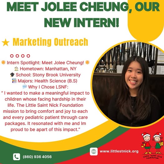 🌟 Intern Spotlight. 🌟 Meet Jolee Cheung, our new Marketing Outreach Intern from Stony Brook University. 🎓 Jolee is passionate about bringing comfort and smiles to children in hospitals and chose LSNF because she wanted to make a meaningful impact on kids facing hardship.