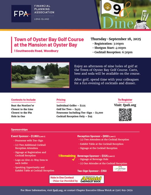 The Financial Planning Association® of Long Island (FPALI) is the membership organization and professional home for committed practitioners who want to master the practice of financial planning and help shape the future of the profession. THE FPA OF LONG ISLAND CHAPTER, THROUGH ITS PROGRAM MEETINGS AND ANNUAL SYMPOSIUM PROVIDES AN EDUCATIONAL AND NETWORKING FORUM FOR PROFESSIONAL FINANCIAL PLANNERS SO THEY MAY PROVIDE THE HIGHEST LEVEL OF SERVICE TO THEIR CLIENTS.WE PROMOTE ACTIVITIES ON LONG ISLAND TO BENEFIT THE FINANCIAL PLANNING PROFESSION, OUR MEMBERS AND THE GENERAL PUBLIC.THE LONG ISLAND CHAPTER WILL CONTINUE TO BUILD AND RETAIN A GROWING MEMBERSHIP WITH ASHARED VISION.