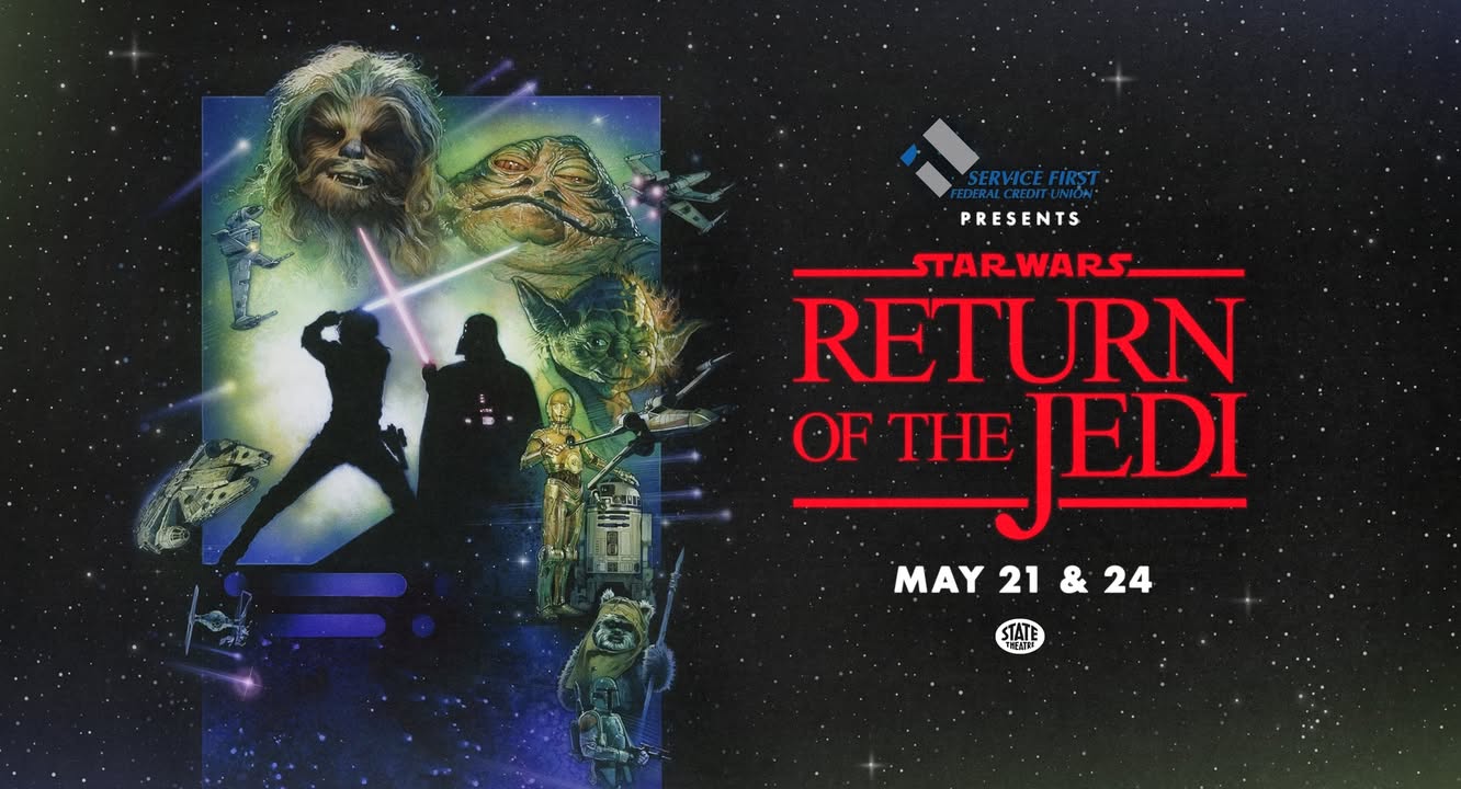 Tonight. STAR WARS: EPISODE VI - RETURN OF THE JEDI (1983 | PG | 4K) // Presented by Service First FCU 🕒 Doors at 6:15pm / Show at 7:00pm 🎟️ Limited seats remain, advance tickets recommended ➜ https://tinyurl. com/4dpey37h "At the end of it all, after the three movies, we've taken an epic fantasy journey.