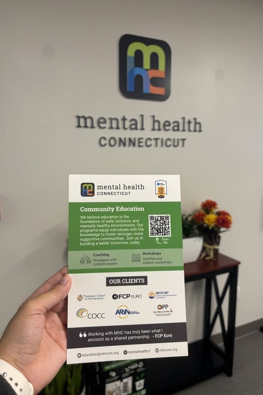 🗓️ October 5–11 is Mental Health Condition Awareness Week Learning about mental health reduces stigma, saves lives, and supports our communities. MHC offers certified trainings and customizable workshops across Connecticut. Topics include Mental Health 101, Mental Health First Aid, Mental Health First Aid Debrief, A Cultural Humility Approach to Mentally Healthy Work Environments, The Intersectionality of Discrimination and Mental Health, Stress management, Burnout, and more.