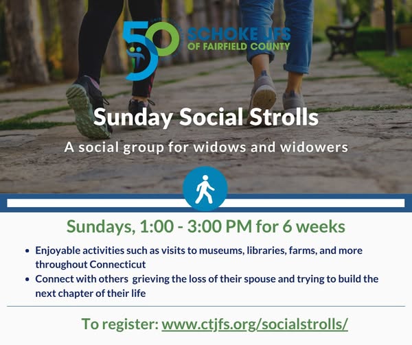 🌿 Sunday Social Strolls – A Social Group for Widows & Widowers 🌿 Next Outing: Oct 19 – Colors of Autumn Walk 🍁 📍 Bartlett Arboretum & Gardens | 🕐 Sundays at 1:00 PM 👟 Wear comfy shoes, your coziest fall sweater, and bring a snack. Register: www. ctjfs.