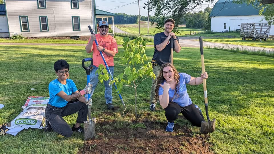 π³Thank you to U of R graduate students Anvitha, Evan, Claire, and Arseniy for gifting us 'Scatty Tree', a maple they planted as they begin their graduate work in secondary science. For the past few years, their program has been working with the community of Sodus as they learn about how they can position youth to be agents of change as they practice science. π± Their wish for us: "We hope Scatty Tree will grow into a great and mighty tree that will provide shelter, nourishment, and shade to all who connect with our maple.