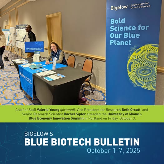 Maine researchers and entrepreneurs are unlocking the potential of marine resources to develop new foods, medicines, materials, and climate-friendly products. Stay up to speed with Bigelow Laboratory for Ocean Sciences's support of ocean-related innovation in our regular Blue Biotech Bulletin feature, available on Currents. This week’s updates include the University of Maine's Blue Economy Innovation Summit in Portland, the fall 2025 edition of the Maine Algal Research Infrastructure and Accelerator (MARIA) e-newsletter, and regional discussions about competitiveness and climate change.