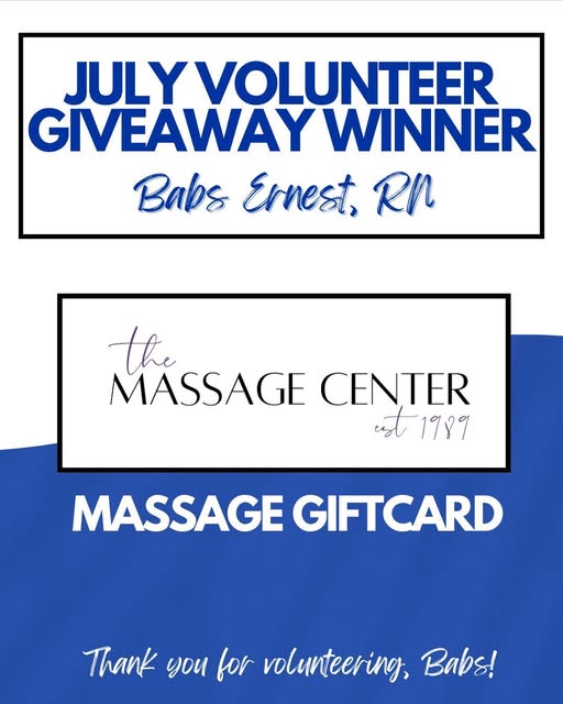 This past Sunday was Babs’ lucky day — she was named our Volunteer of the Month and won the Massage Center gift card drawing. We’re incredibly grateful for all of our volunteers, and we’re glad to show our appreciation with small gestures like these. Thank you for all you do.