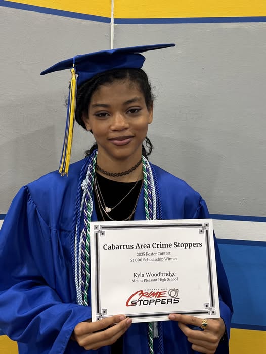 Cabarrus Area Crime Stoppers would like to recognize and congratulate Mount Pleasant High School student Kyla Woodbridge. Kyla was the first place winner in a poster drawing contest which was voted on by board members and others. Her artwork and effort is greatly appreciated and will now be displayed for others to appreciate.