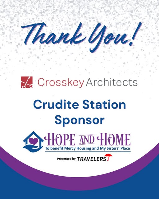 Great News. Crosskey Architects is joining the 7th Annual Hope and Home Celebration presented by Travelers Insurance as our EXCLUSIVE Crudite Station Sponsor. Their support provides the crunchy carrots, fresh fruits, and other delightful bites you'll enjoy during cocktail hour.