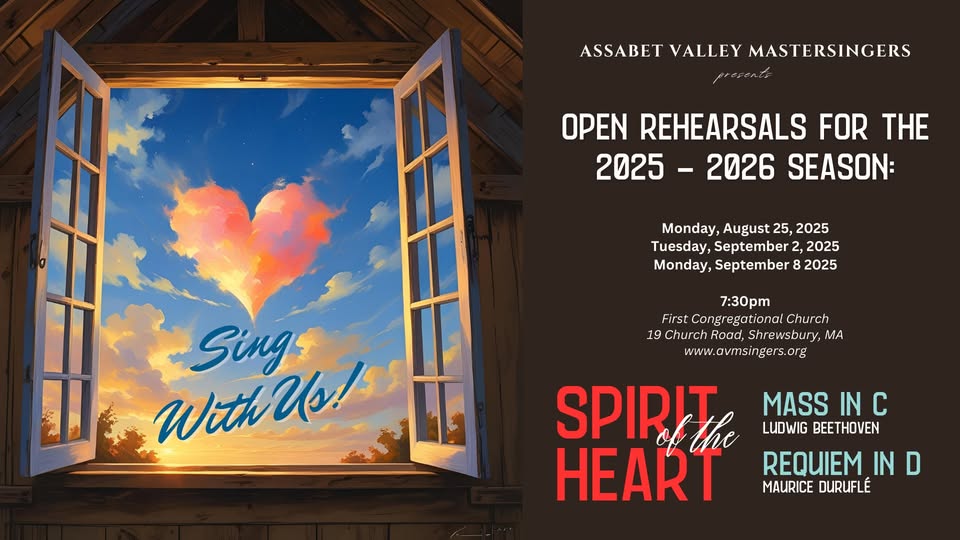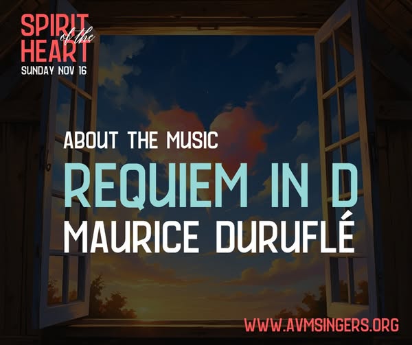 Experience the Profound Beauty of Duruflé’s "Requiem" Join the Assabet Valley Mastersingers on Sunday, November 16, 2025 at 3:30 PM at Pilgrim Church in Southborough, MA for a powerful performance of Maurice Duruflé’s "Requiem"—a choral masterpiece of spiritual depth and timeless beauty. Rooted in the solemn melodies of Gregorian chant, Duruflé’s "Requiem" offers a contemplative and deeply human meditation on life, death, and eternal peace. Composed in memory of the composer’s father, the work moves gracefully between sorrow and serenity, fear and hope, culminating in a transcendent vision of paradise.