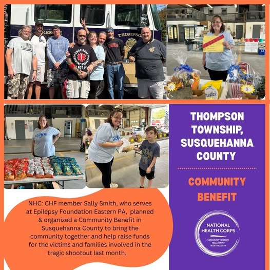 National Health Corps: CHF service members are doing amazing things in their communities. Sally Smith, who serves at Epilepsy Foundation Eastern PA, planned and organized this Community Benefit in Susquehanna County for the victims and families of the shootout that happened in Thompson Township last month. Sally did an amazing job at bringing her community together to show support for those in need and raise money to help their families during this difficult time.