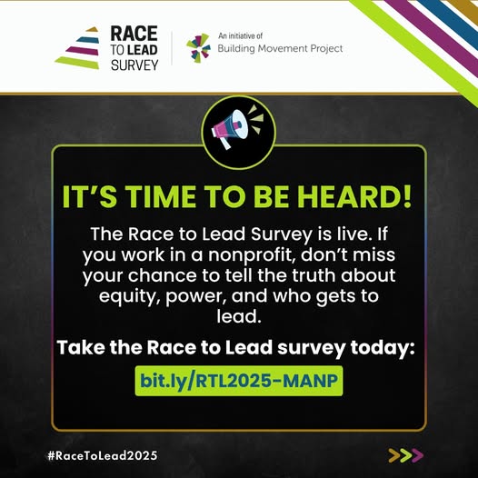 It’s here. Building Movement Project’s flagship research initiative, the Race to Lead Survey, is LIVE. If you work at a nonprofit, your insights can help reshape leadership pipelines, expose systemic inequities, and ensure your voice is part of the national conversation.