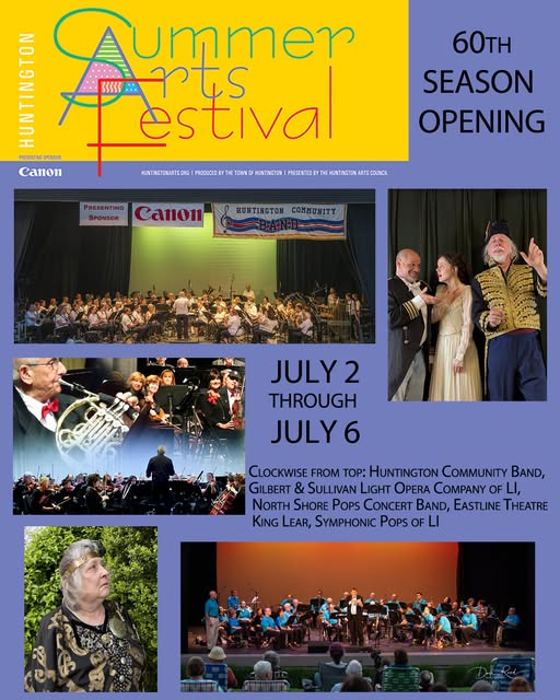 Huntington Arts Council is proud to announce the opening week of the 60th Anniversary season of the Huntington Summer Arts Festival, produced by the Town of Huntington @townofhuntington and presented by the Huntington Arts Council. Opening night, Wednesday, July 2 features the Huntington Community Band @hcbandny at 8:00PM, followed by Gilbert & Sullivan Light Opera Company of LI: HMS Pinafore on Thursday, July 3, 8:00PM, Friday, July 4, North Shore Pops Concert Band, 8:00PM, Saturday July 5, Eastline Theatre: King Lear @eastlinetheatre, 8:00PM, and Sunday 7/6, Symphonic Pops of LI @symphonicpopsli, 8:00PM. Join us 7/2 at 7:00PM for a celebratory Ribbon Cutting hosted by the Huntington Chamber at the Chapin Rainbow Stage.