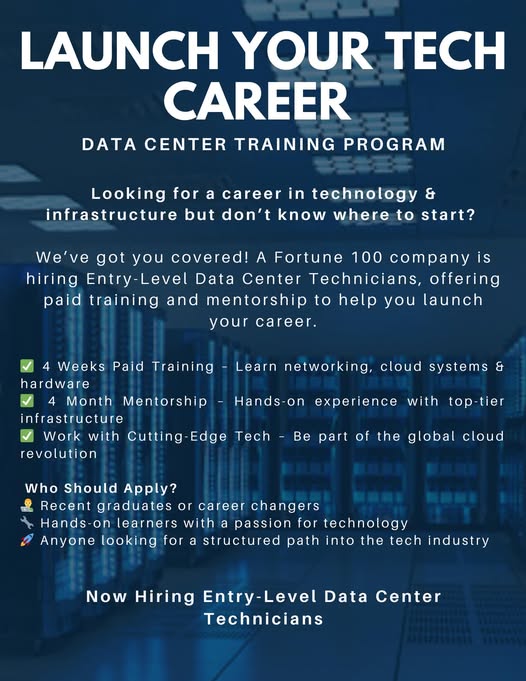 Are you or someone you know looking for a career in technology or infrastructure and don’t know where to start. The Data Center Pathways ATL Skilling Program is a game-changer for recent graduates, career changers, or anyone eager to break into the fast-growing world of tech, no prior experience needed. This program provides paid training, mentorship, and a direct path to full-time employment in a data centers, which are the backbone of today’s digital world.