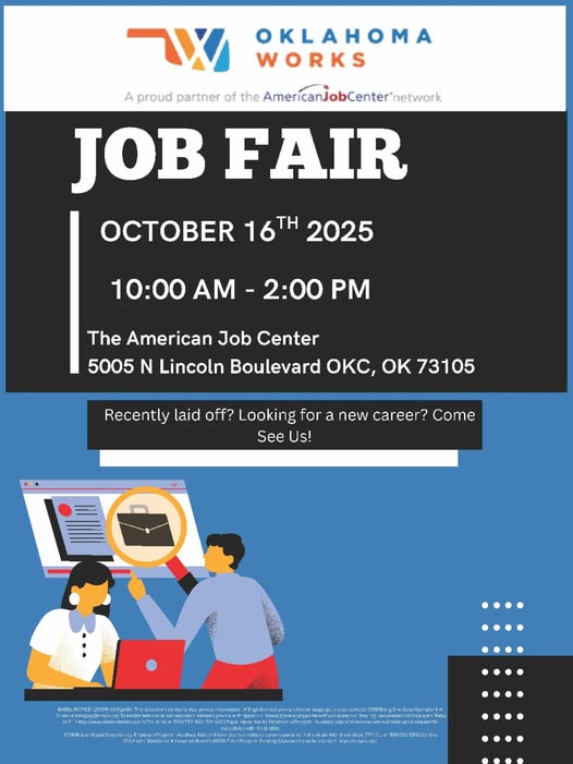 π£ Facebook Post: π¨ JOB FAIR ALERT. π¨ Are you a dislocated worker or simply looking for a new career opportunity. Join us at the American Job Center for a Job Fair on: π Thursday, October 16, 2025 π 10:00 AM β 2:00 PM π 5005 N.