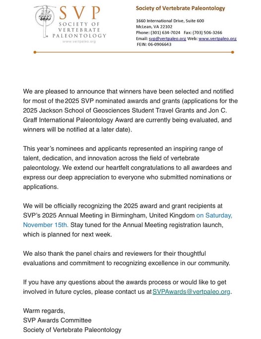Interesting organisations close by to residence of Society of Vertebrate Paleontology