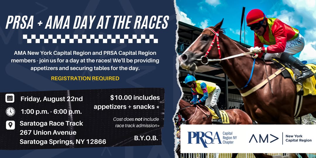 Have you checked the forecast. Friday is looking like a perfect day to be at the Saratoga Racetrack with PRSA Capital Region & AMA New York Capital Region - American Marketing Association. 😎☀️ We'll have tables reserved, snacks to share, and sunshine.