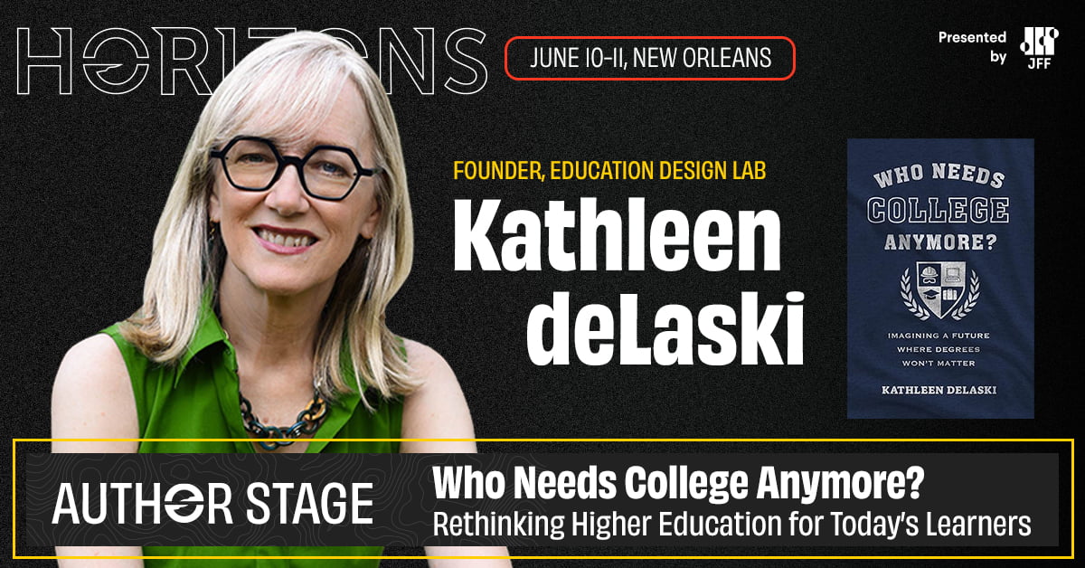 Is the four-year degree still the gold standard—or is it time to rethink what success in higher ed really looks like. Join Kathleen deLaski, author of Who Needs College Anymore. (Harvard Education Press, 2025), and Elisha Gilliam, Chief Talent Officer at Year Up United, for a bold conversation on the Horizons Author Stage on reimagining postsecondary education for today’s learners.