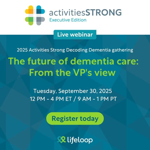 Are you registered for LeadingAge Bronze Partner LifeLoop's virtual event, "The future of dementia care: From the VP's view", happening Tuesday, September 30. In three focused sessions, senior living executives will share honest perspectives on what drives them, how they make decisions, and where they see our field going. Get up to 3 free CEUs.