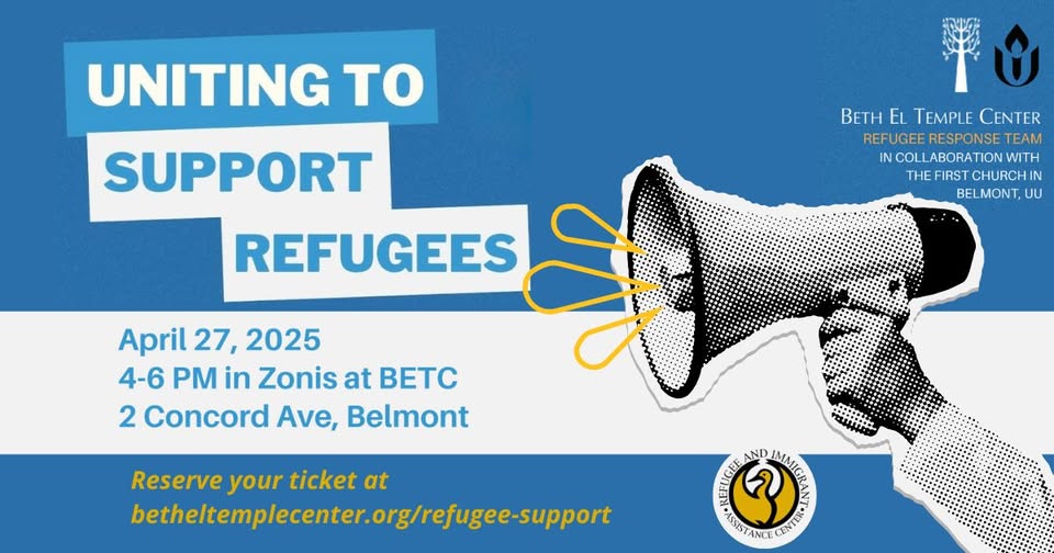 ๐ Uniting to Support Refugees โ Community Fundraiser ๐ You're invited to a special afternoon of music, connection, and purpose in support of refugees and immigrants rebuilding their lives in Massachusetts. ๐ Sunday, April 27 ๐ 4:00โ6:00 PM ๐ Zonis at BETC โ 2 Concord Ave, Belmont, MA โจ This event will feature: ๐ถ Live music by a Ukrainian pianist ๐งต A Welcome Blanket exhibit ๐ผ๏ธ A silent auction with unique items and experiences ๐ฝ๏ธ Light multicultural refreshments ๐งก Opportunities to take action and directly support families in need All proceeds go to the Refugee & Immigrant Assistance Center (RIAC), helping provide rental assistance, food, and essential services to newly arriving families. ๐๏ธ Reserve your spot here: ๐ https://www.