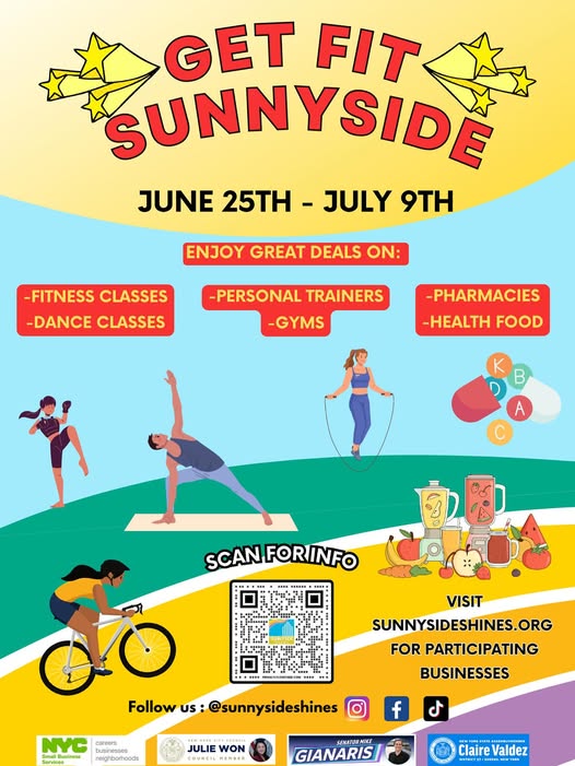 Get ready to sweat, smile, and shine, Sunnyside. Our annual “Get Fit Sunnyside” event is back and brighter than ever, running from June 25th to July 9th. We’re absolutely thrilled to once again promote the fantastic healthy juice bars, invigorating gyms, and supportive pharmacies right here in our vibrant Sunnyside, Queens community.