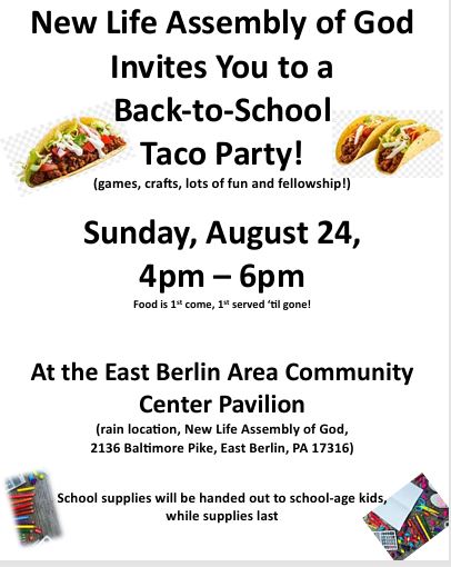 2136 Baltimore Pike, East Berlin, PA 17316 https://www.nlageb.org Services: Sun. 9:30 am, Wed. 6:30 pm New Life Assembly is a family of spirit-empowered believers building relationships and helping a hurting world find Jesus. Ultimately, we exist to worship the Lord, reach the lost, and minister to a hurting world.