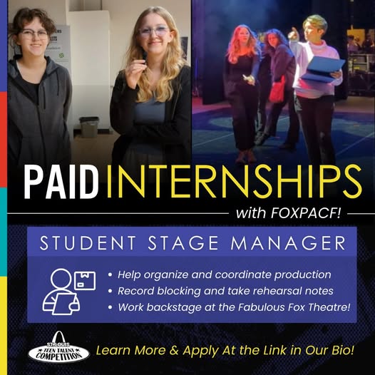 We're looking for high school students with stage management experience to apply for our Student Stage Manager Internship. Student Stage Managers will take notes, assist at rehearsals, and have the opportunity to work backstage at The Fabulous Fox . Check the link in our bio for more information and to apply.