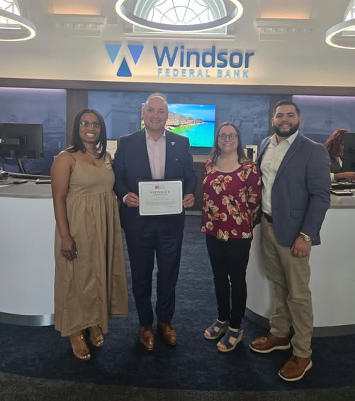 The Windsor Education Foundation (WEF) presented a certificate of appreciation to Windsor Federal Bank in recognition of their outstanding philanthropic commitment to local education. "As one of our founding 'Funding Friends' who helped establish WEF in 2007 and a steadfast corporate sponsor, Windsor Federal Bank has consistently demonstrated exceptional support for our mission," stated WEF President Paula Pierce. Every year, the Windsor Education Foundation empowers our local educators with grants that bring extraordinary learning experiences directly into Windsor classrooms.