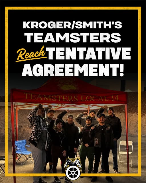 Following a credible strike threat, more than 140 warehouse workers at Smith’s Food and Drug, a wholly owned subsidiary of Kroger, have reached a tentative agreement. The workers, represented by Teamsters Local 14, are based at the company’s Las Vegas distribution center. “These hardworking Teamsters made it clear they would not accept anything less than a strong first contract,” said Jason Gately, Secretary-Treasurer of Local 14.