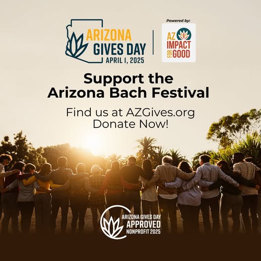 The Arizona Bach Festival is one of the many Arizona nonprofit organizations participating annually in Arizona Gives Day, and it's tomorrow, April 1st (we’re not fooling). As with all performing arts organizations, our ticket and festival pass proceeds cover only part of our operating expenses, so please visit the link below and make a gift now. https://www.