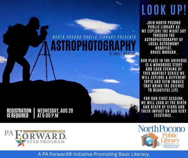 Join North Pocono Public Library as we explore the night sky through the astrophotography of local astronomy hobbyist Bruce Morgan. 🔭✨ Our place in the universe is a wondrous story and each evening of this monthly series we will explore a different topic and view images that bring the science to life. 🌟For our first session, we will look at the birth and death of stars and their impact on our very existence.