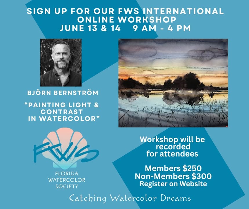 Florida Watercolor Society - About S I T E M A P Come and Paint in Your Best Light Artists at every level from those just learning the media to seasoned professionals will find opportunities for growth learning and showing their work with the Florida Watercolor Society. We offer workshops demonstrations and instruction by renowned national artists and local professionals. We offer both juried and nonjuried shows open toall members that meet the Florida Residency requirements. Ourjuried shows include our Annual Exhibition for the past 52 years and ourOnline Associate Members show.