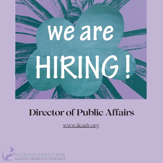 ICADV is currently seeking a full-time Director of Public Affairs. The Director of Public Affairs will lead ICADV’s strategic communications and advocacy efforts to amplify our mission and ensure our services and impact are effectively communicated to member agencies, legislators, and other government officials, media outlets, and our communities at large. As the organization’s communications lead, you will manage the Communications Coordinator and help shape public perception, influence policy, and foster member and community relationships that support our internal and external member services.