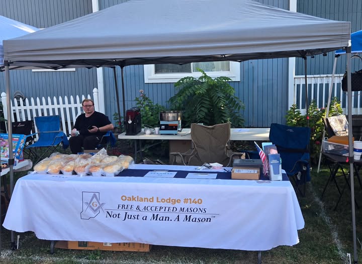 Oakland Lodge #140 F&AM Oakland Lodge 140 FAM 2025 Officer Installation Front row left to rightSS Jimmy Zettagram JD Richard Hix Jr. SD Richard Hix Sr. Tyler Bob Lasher Chaplain Don Waymier Back row left to rightSW Aaron Lauber WM Derek Cheek Treasurer Ancle Jones JW Frank Jackson Secretary Brian Hooten SW Aaron Lauber WM Derek Cheek JW Frank Jackson Richard Hix Sr. and Richard Hix Jr.