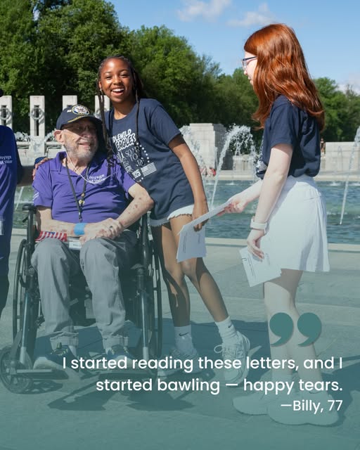 When 77-year-old Navy veteran Billy traveled from Wyoming to Washington, DC with our Voyage of Valor program, he was expecting powerful moments of reflection at the Vietnam Veterans Memorial. What he didn’t expect was a group of 5th graders from Tennessee who would change his life—and theirs. Ahead of the trip, students from Idlewild Elementary wrote letters to the veterans, thanking them for their service.