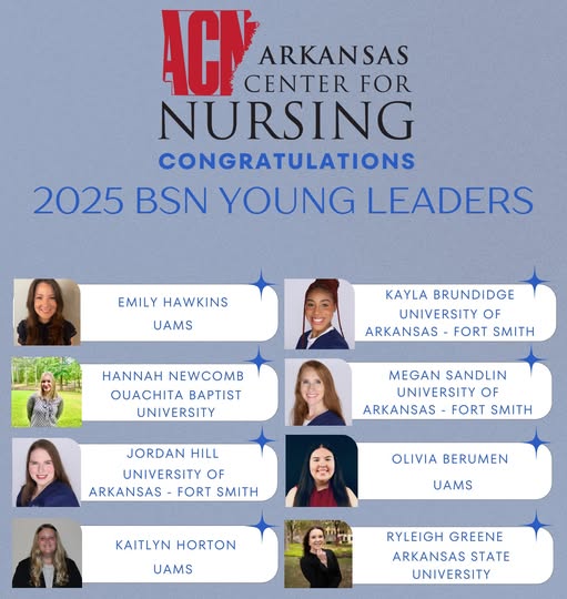 Arkansas Center for Nursing - Home Join UsMember Area Welcome to the Arkansas Center for Nursing The Arkansas Center for Nursing is the states nursing workforce center. Congratulations to our 2024 BSN Young Leaders LATEST UPDATES 2024 40 Nurse Leaders Under 40 Congratulations to the 2024 40 Nurse Leaders Under 40 Awardees PurPurchase TicketsSponsorship Options. pdf Member Spotlight Join Our Member Organizations View All Welcome tothe ACN Our history mission purpose structure and director info. Learn More GetInvolved Learn about the benefits of membership.