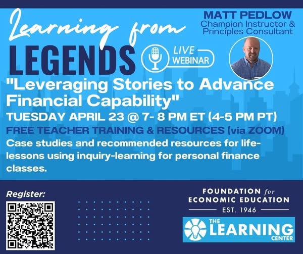 📢 Virtual PD TONIGHT (April 23) "Leveraging Stories to Advance Financial Capability" Are your students training for the National Personal Finance Challenge. Are they about to start their first summer job. Get FREE case studies and resources to help you finish the school year with a bang (or, a ka-ching.