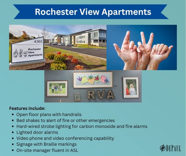 During #DeafAwarenessMonth in September, we reflect on our agency’s rich history of serving individuals who are Deaf or hard of hearing by shining a spotlight on DePaul’s Rochester View Apartments (RVA). Opened in 2015 in Henrietta, the building design includes features intended to create a more inclusive living environment for individuals who are Deaf or hard of hearing. In addition, DePaul partnered with local artists as well as the RIT/NTID to display artwork in the building.