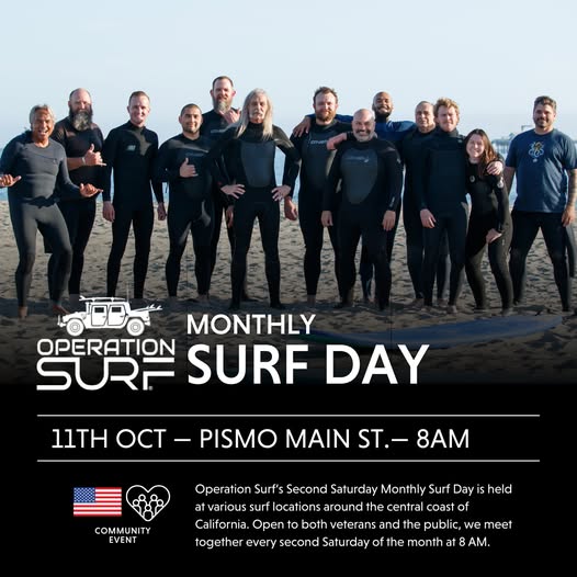 PISMO (Main. St) 👉🏼 Tomorrow's Monthly Surf Day Location Saturday, October 11th | 8:00 AM Grab your board and wetsuit and meet us at the beach for a surf. Operation Surf's Monthly Surf Day is open to all—whether you're catching waves or just coming to hang out, everyone is welcome.